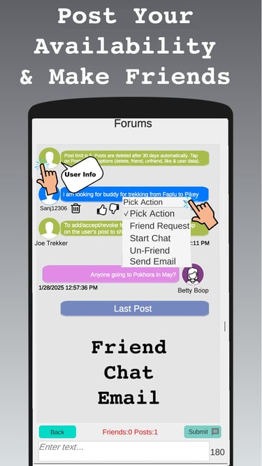 Download the App, register and then join our forums by Activity and Regions of the world.